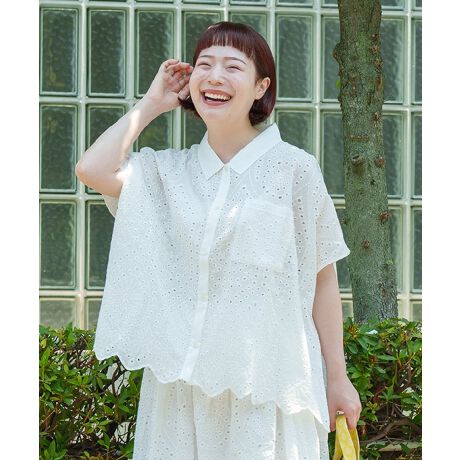 スカラップ刺繍生地でワイドシルエットのシャツを作りました。