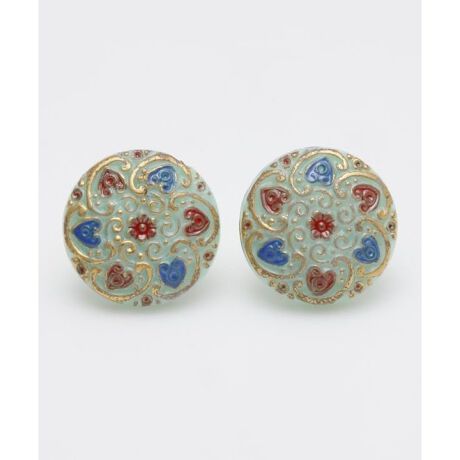 きらめくクリアガラスや優しいミルキーガラスに、色とりどりの繊細な手描きの絵付けが施された、チェコ・ボヘミア地方の愛らしいガラスボタン。直接仕入れている現地の工房では、昔ながらの手作業でひとつひとつ丁寧につくられています。そんな魅力あふれるガラスボタンを素敵なピアスに仕立てました。ひとつひとつ微妙な違いがあり、手作りならではの味わいをお楽しみいただけます。陽の光と相性が良く耳元できらきらと輝きます。しっかりとアクセントになるサイズ感です。