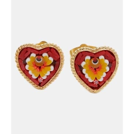 イタリア・フィレンツェの伝統技法「ガラスモザイク」で作られた、ミニイヤリング。1mmほどのベネチアンガラス(ムラーノガラス)をフレームにはめ込んで、お花などの模様を表現しています。昔ながらの職人の繊細な技が光ります。身に着けてちょっと嬉しくなるアイテムです。※ガラスモザイクは色や形が一つ一つ異なるアソートです。