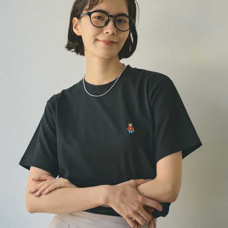 キャラクターモチーフのベア刺繍がアクセントとなった半袖Tシャツ。