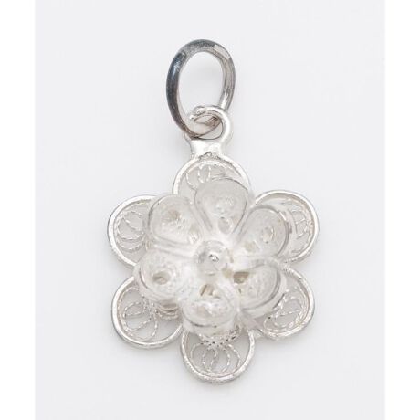 地中海に浮かぶマルタ島で500年続く伝統工芸品の銀細工「フィリグリー」。ルネサンス時代から変わらぬ手法で受け継がれた、繊細なハンドメイドの芸術と称されるアクセサリーです。丸くて可愛らしい2段の花びらをもつ可憐なお花をモチーフにしたペンダントトップ。涼しげな透かしとシルバーの輝きが胸元を彩ります。生産者さんのサインと日付入りのカードと一緒に、ケースに入れてお届けします。大切な方へのプレゼントや自分へのご褒美にぴったりなアクセサリーです。