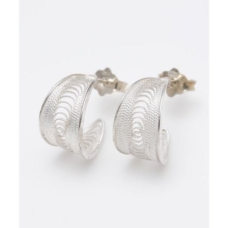 地中海に浮かぶマルタ島で500年続く伝統工芸品の銀細工「フィリグリー」。ルネサンス時代から変わらぬ手法で受け継がれた、繊細なハンドメイドの芸術的と称されるアクセサリーです。細い銀線のカーブが美しいフープピアス。繊細で涼しげな透かしとシルバーの輝きが耳元をスタイリッシュに彩ります。生産者さんのサインと日付入りのカードと一緒に、ケースに入れてお届けします。大切な方へのプレゼントや自分へのご褒美にぴったりなアクセサリーです。