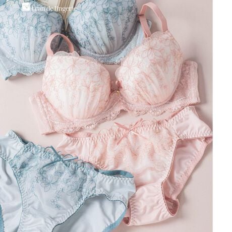 ラメ糸がきらめくフラワー刺繍レースが印象的なブラ&ショーツSET