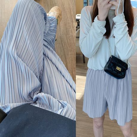 伸縮性:なし(プリーツの広がりにより楽に着られます。)