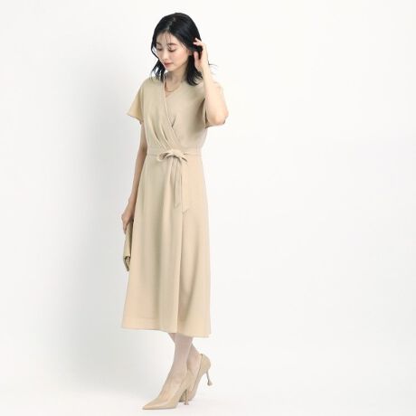 【洗える/日本製/清涼感】夏におすすめ!女性らしいカシュクール風デザインワンピース