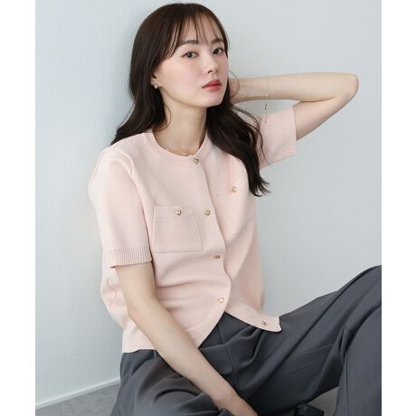 ハートボタンが可愛らしい半袖ニットカーディガン