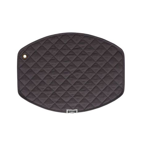 カラーバリエーション豊富な大人気GLUTTONシリーズのプレイスマット。 キルティングの柔らかさを感じつつも、丸みを抑えた形状に仕上げることで、ハードな印象をプラス。食卓を絶妙なバランスで賑やかにしてくれます。 収納時にかさばりがちなキルティング地も、S字フック等で吊り下げ保管が出来るように真鍮のハトメを施しました。 食卓やアウトドアシーンに、程よい存在感で馴染んでくれるランチョンマットを。