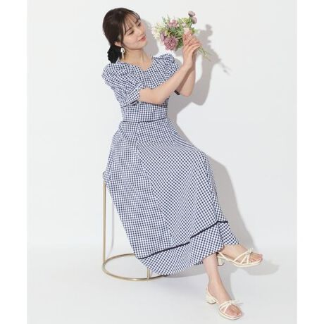 ギンガムパフ袖ワンピース