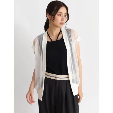 ・前を閉じて1枚着として着ていただくのはもちろん、ホックを開けてノースリーブトップスの羽織としても活躍します。