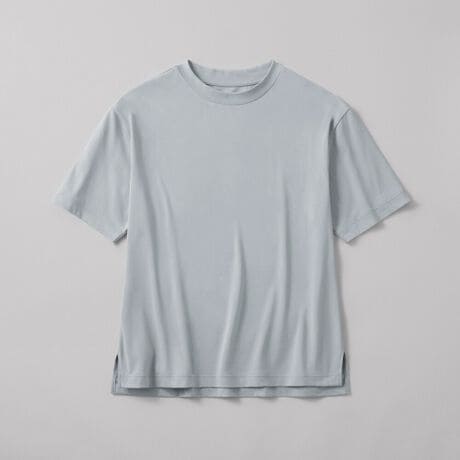 肌側オーガニックコットン100%で、汗も透けも紫外線も気にならない。体型カバーも叶える5分袖Tシャツ。