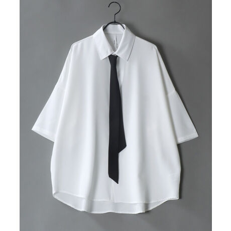 ネクタイ付き ワイド 半袖 ドレスシャツ