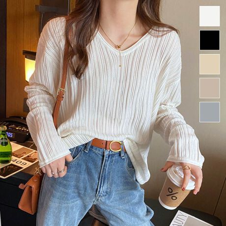 楽に華奢見えできる薄手のVネック長袖セーターが登場♪<br>