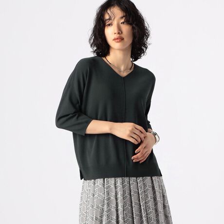 総針の編地はほど良い厚みとはり感とオチ感をもつため、透けすぎや身体のラインを拾い過ぎを気にせず着られます。