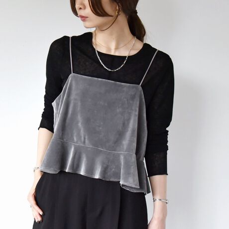 細めの肩紐と、裾のフリルがポイントのレイヤードキャミソール。