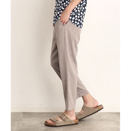 サマーウールのようなメランジ感と清涼感があり、サラッととした肌触りと軽い穿き心地で夏におすすめのイージーパンツ。