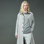 夏から秋へ、季節を繋ぐロングシャツアウター。フロントは比翼デザインで、ボタンを表出ししないように設計されたクリーンな見た目が特徴。長めの着丈で縦のラインを強調し、スマートで洗練された印象を与えてくれる上品な一着です。襟周りやポケット口に配されたレザー調のパイピングがブランドらしく、高級感を演出してくれます。