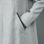 天然素材見えするウール調ポリエステルを使用。防シワ・軽量・ソフトな風合いが特徴。