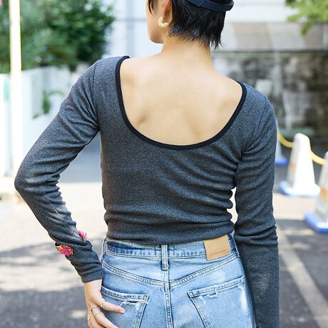 背中開きがヘルシーなブランドらしいパネルリブのロンTEE。