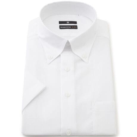 【半袖】ボタンダウンワイシャツ ホワイト ドビー 綿100% ノーアイロン 形態安定 クールビズ