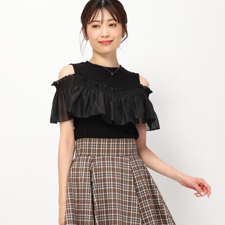 ひらひらとしたラッフルが可愛らしさを演出するカットソー。ショルダーのボタンを留めれば、印象の変化を楽しむことができます。身頃部分のリブ生地が程よいフィット感をプラス。ボトムスにタックインしたメリハリのある着こなしがおすすめです。■fabric透け感[一部有り]裏地[無し]伸縮性[有り]生地の厚さ[普通]