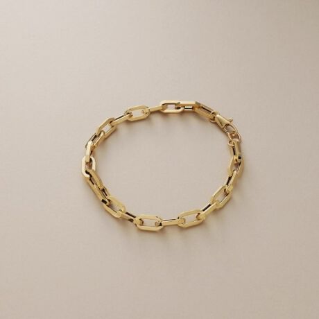 オクタゴン形のコマがモードな印象のK18素材の中空チェーンブレスレット。