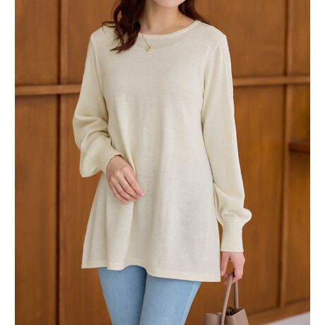洗える!カシミヤタッチ袖ケーブルニットチュニック