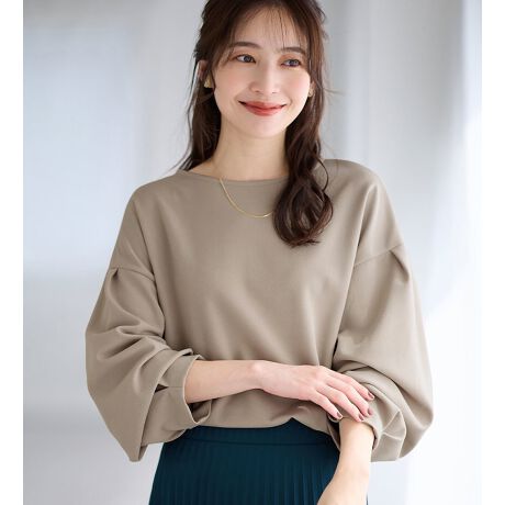 ・タックデザインによりふわっとボリュームのあるランタンスリーブで、上品な印象に。