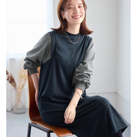 1枚でお洒落にキマる!袖切替のドッキングワンピース。
