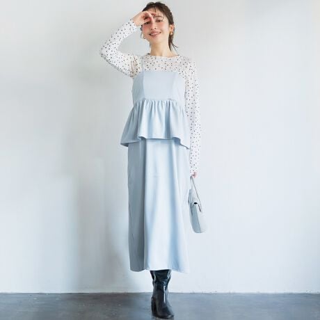 360度抜かりない美シルエット、女性らしさと抜け感を兼ね備えたペプラムキャミワンピース