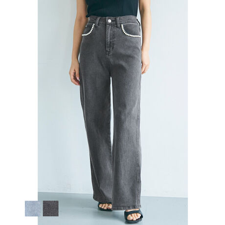 ポケットにあしらったパールでフェミニンカジュアルに仕上がるデニムパンツ