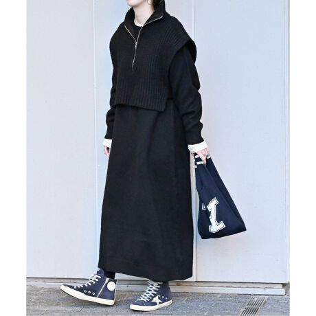 ハーフジップベスト付きワンピース