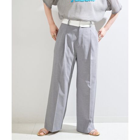 スラックスパンツのディティールであるマーベルトをあえて表にデザインを施した、トレンドライクなパンツです。
