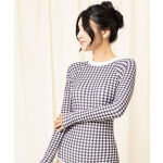 千鳥柄はバックファスナーつきハイネックのスタイリッシュなワンピースタイプです