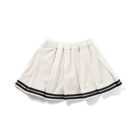 アイボリーとネイビーにラインがアクセントになった爽やかな雰囲気のプリーツスカート。人気のインパンツ付き仕様で、元気に動き回っても安心◎シルエットがきれいなのでTシャツに合わせるだけでおしゃれなスタイルに。夏らしく、マリン風に着こなすのもおすすめ♪おそろいデザインのタックパンツもご用意しているので、きょうだいでリンクコーデも楽しめます。