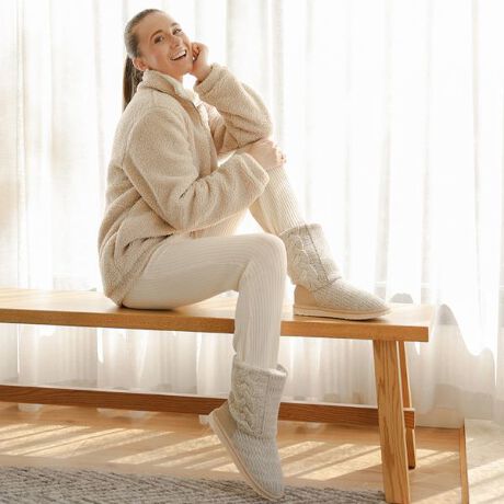 ウールニット編みのNEWブーツ。アッパーはウールニット編みとライニングはオーストラリア産シープスキンの2重の構造になっており贅沢なアイテム。折り返してもスタイリングできる2WAYタイプ。