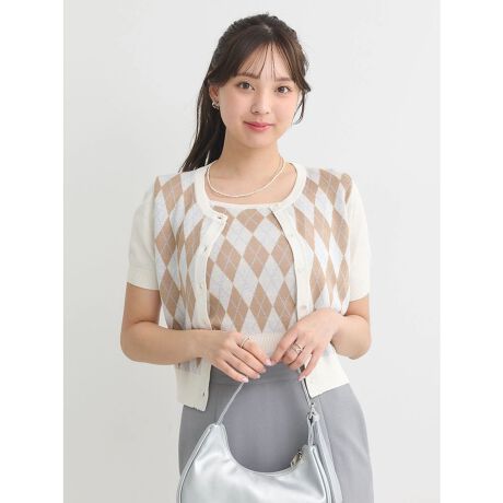 ショートコンパクトなカーディガンとラウンドカットのタンクトップ、単体使用も可能な嬉しいセットアイテムです。