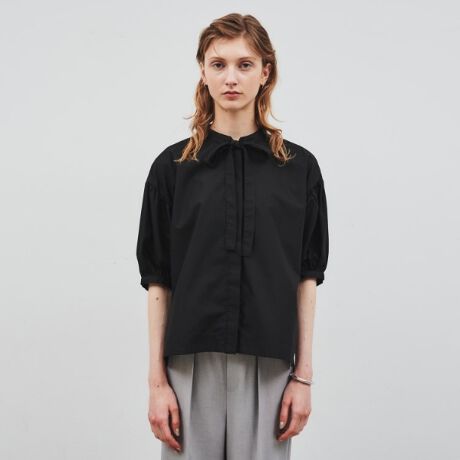 リボンタイを結んで女性らしいスタイリングにも、結ばずに着用するとカジュアルなスタイリングにもまとまります。
