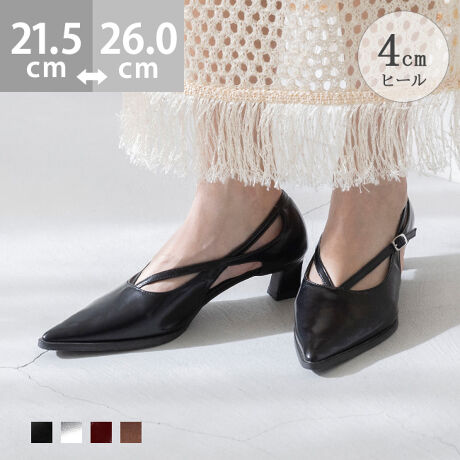 少しくびれた変形ヒールも合わさって、履くだけで大人の抜けコーデが完成します。
