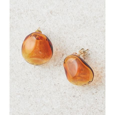 ガラスの側面に揺らいだ感じの模様をつけ、天然石のような輝きが素敵なピアス。