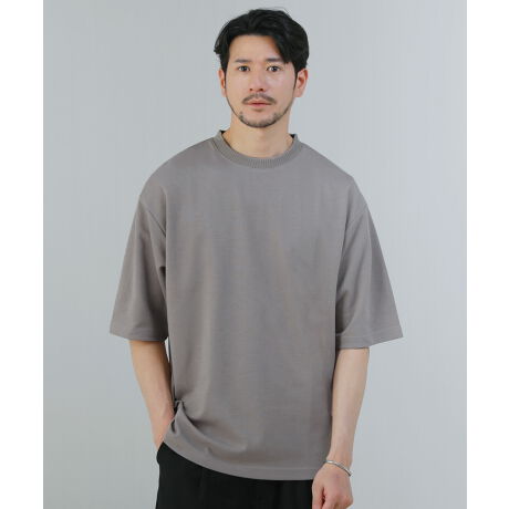 【接触冷感】ポンチ襟リブ裏配色半袖カットソー