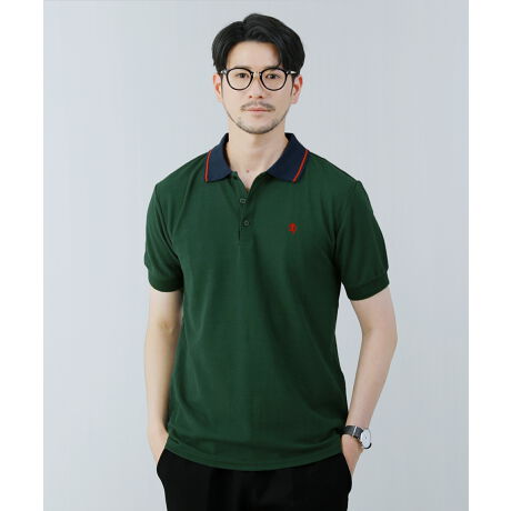 吸水速乾T/Cカノコ衿配色ワンポイント半袖ポロシャツ