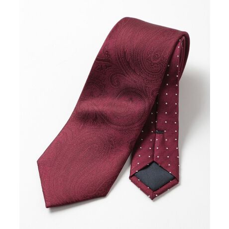 大剣にシャドーペイズリー柄、小剣にドット柄を採用したシルクネクタイ。