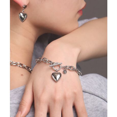 ●ぷっくりとしたハートのチャームがついたチェーンブレスレット。