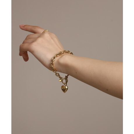 ●ぷっくりとしたハートのチャームがついたチェーンブレスレット。