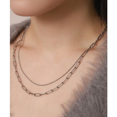 ●華奢なスクリューチェーンと長アズキチェーンが連なった2連チェーンネックレス。