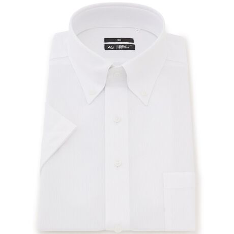 【半袖】ボタンダウンワイシャツ ホワイトドビー ノーアイロン ストレッチ クールビズ 洗える