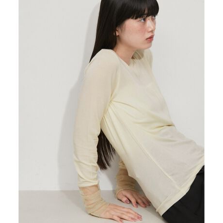 程よく透け感のある表情が今っぽい、ロングスリーブのプルオーバー。袖口がチュール切り替えになっており、シアーな表情に新鮮さを感じられるデザイン。