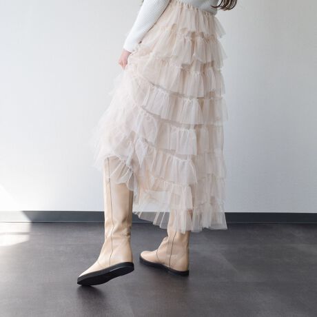 かつての定番デザインのロングブーツを現代的にアップデートした一足。