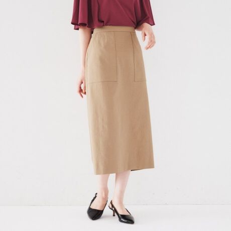 カーゴポケットディティールのナロースカートは、カジュアルになり過ぎない少しキレイめなデザインになっていて、普段使いや通勤にも活躍間違いなし。