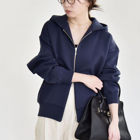 フロントのメタルジップも、カジュアルなフーディーアイテムをクラスアップしてくれます。